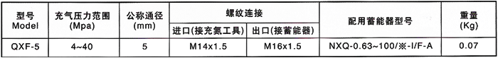 QXF型充气阀是为蓄能器充装氮气的专用单向阀,该充气阀借助充气工具向蓄能器充气。充气完毕,取下充气工具后即可自行关闭。本充气阀也可用于非腐蚀性气体的安装。本型充气阀具有体积小、承压高、自封性能好等特点。