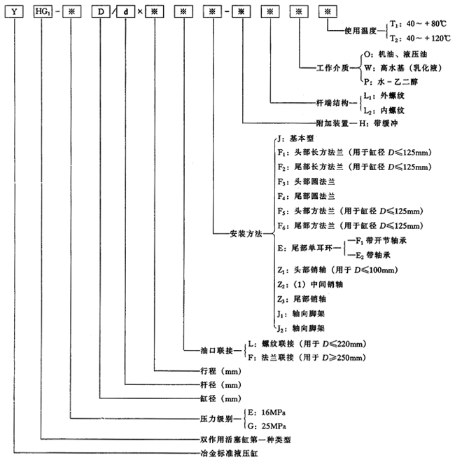 缸径 D/mm | 速比 φ | 杆径ΦMM /mm | YHG1E(16MPa) | YHG1G(25MPa) | ||